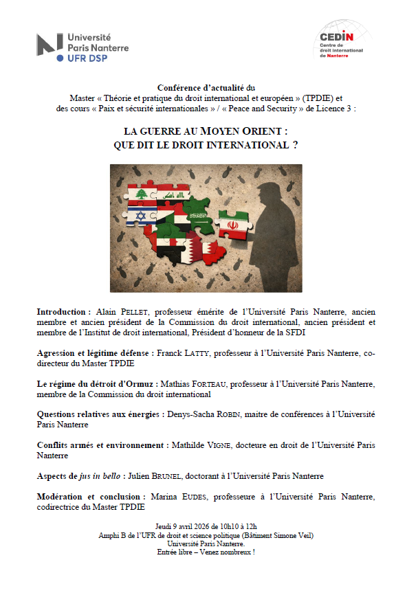 9 avril 2026 – « La guerre au Moyen-Orient : Que dit le droit international ? »